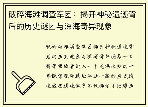破碎海滩调查军团:揭开神秘遗迹背后的历史谜团与深海奇异现象